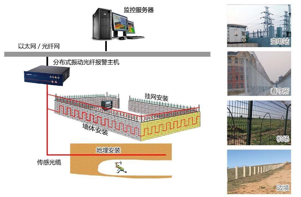 光纖振動(dòng)探測(cè)、視頻監(jiān)控、聯(lián)動(dòng)輔助、網(wǎng)絡(luò)傳輸、系統(tǒng)算法、服務(wù)器系統(tǒng)、防雷接地、監(jiān)控中心等子系統(tǒng)。